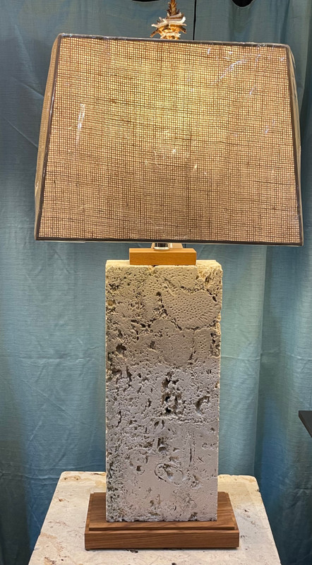 A beautiful blend of Burmese teak and 120k+ coral, the Morada is finished with a burlap or natural linen lampshade and matching teak finial. Part of our Profile family of lamps, these are 30' tall and come with a high quality, UL listed, 150-watt, three-way sockets. We hand select fossilized coral that is laden with coral, shell, marine animals and the beiges and browns of the Sahara Dust. As a result, every lamp is distinctive, natural, practical treasure that will last a lifetime. Of course, we can make matched pairs, upon request. Since each lamp is a one of a kind, please email or call us for photos of available lamps.